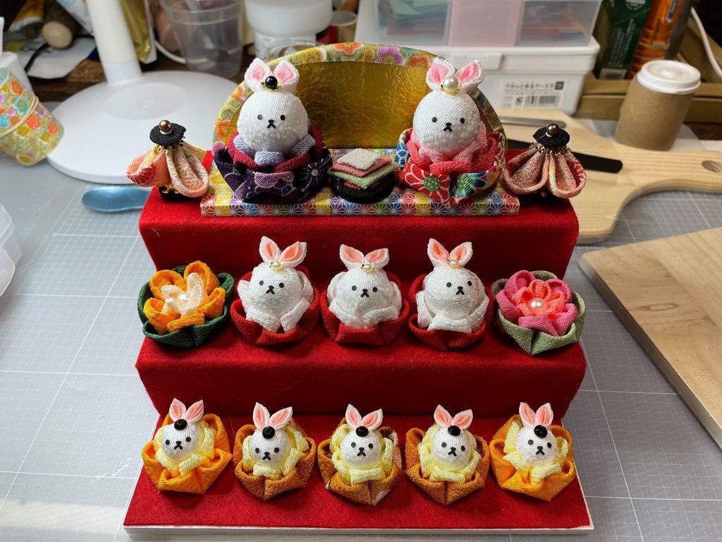 手作りにこだわり、古い着物でつまみ細工や、古紙でクイリング作品を作成しています。